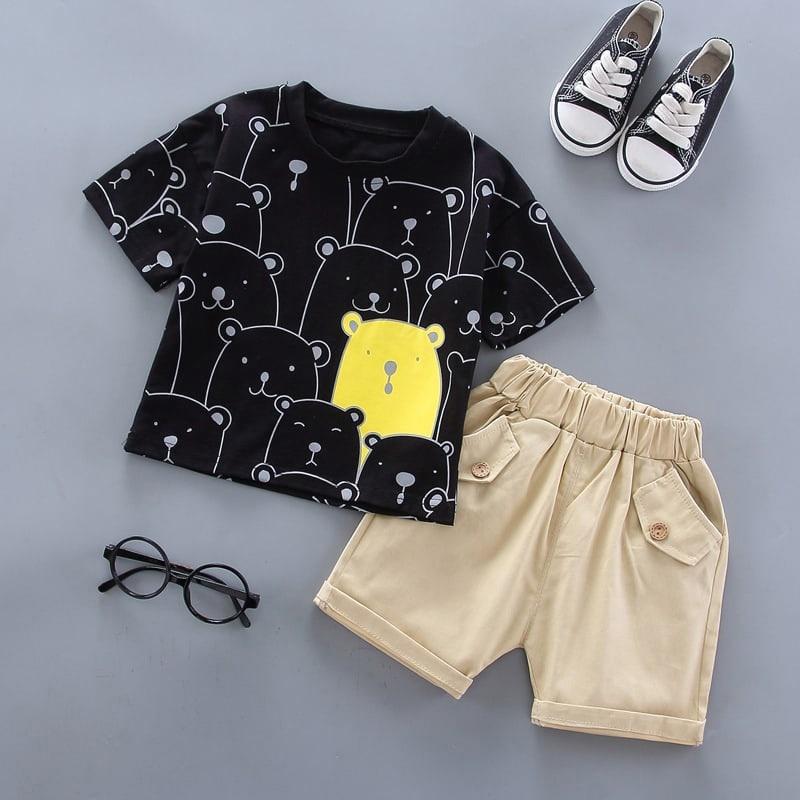 Летний костюм для мальчика с весёлым принтом ткань коттон Размеры р.М шорты дл. 29 бедра 30 тянется футб.дл.34,5 пог 29 р.L шорты дл.31 бедра 32 футб.дл.36,5 пог 30