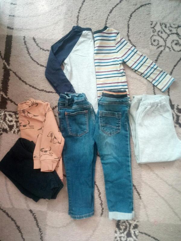 8 единиц + колготы деми, George, Next и вещи без бренда на бирках указан рост 98 см, но на худиго мальчика 92 см роста идеально Брюки длина 54 см, шаг 34 см Длина кофт 36-37, длина рукава 32-34 см