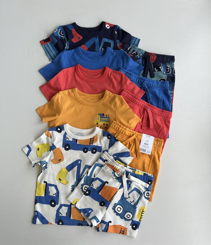 Літні костюмчики для хлопців від британського бренду Футболка тонка, котонова. Шорти двохника, мають кишені та функціональну завʼязку Розміри 1,5-2 є жовтий, білий, синій з принтом і синій однотонний 🌾2-3 є жовтий 🌾3-4 є жовтий, червоний, синій однотонний 🌾4-5 є синій з принтом і однотонний 🌾5-6 є білий, жовтий, теракотовий, синій однотонний 🏷️540 грн один Заміри 📏1,5-2: футболка довжина 40, ширина 32; шорти пояс 24, довжина 26 📏2-3: футболка довжина 43, ширина 33; шорти пояс 25, довжина 27 📏3-4: футболка довжина 44, ширина 34; шорти пояс 25, довжина 30 📏4-5: футболка довжина 45, ширина 35; шорти пояс 26, довжина 32 📏5-6: футболка довжина 48, ширина 36; шорти пояс 27, довжина 33