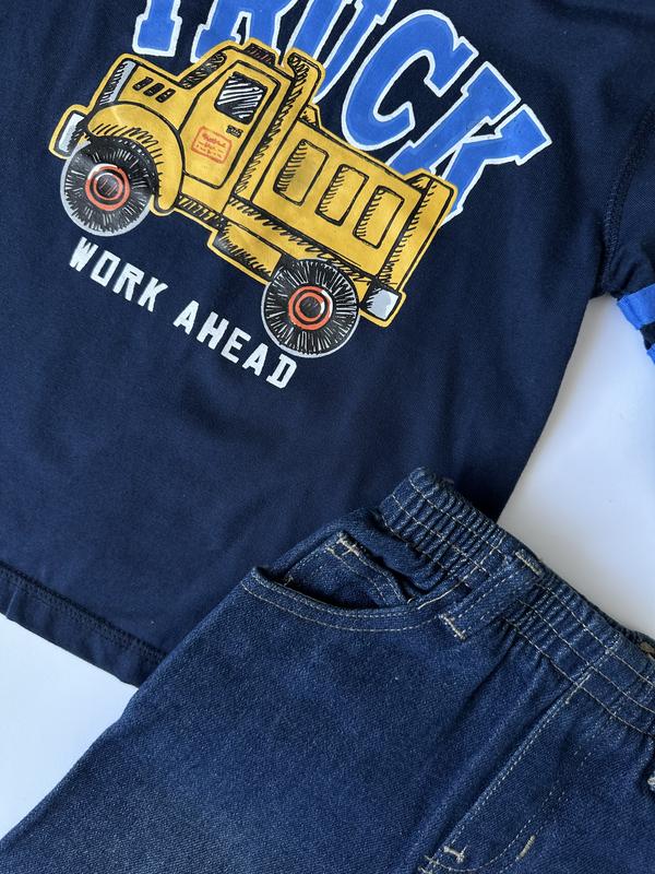 Отличный вариант костюма на прохладную погоду 🍂 Костюм: джинсы и худи Худи: -синего цвета с принтом и капюшоном; -56% хлопок, 44% полиэстер. Джинси: -темно синего цвета; -61% хлопок, 39% полиэстер. 3 года - 740 грн Виробник - Китай