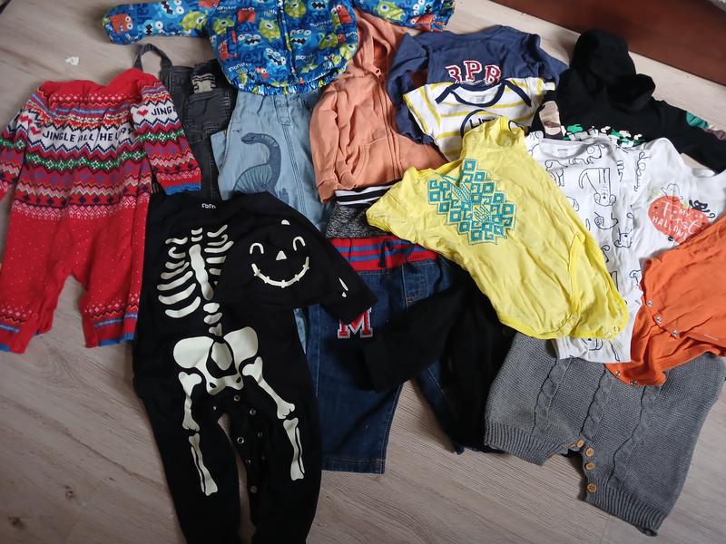Б/у лот вещей на 6-9-12 мес,на 74-80-86р, мастерит все в идеальном состоянии, брандовые и качественные,декие вещи для дома но в очень хорошем состоянии.Перелик вещей:песочники, бодики, коктинки, комбинезоны, курорточка, ульто, вышиванка.Все чистое, выстирнутое, безобезно пятен.На фото лишь половина вещей,все не фотографировала.