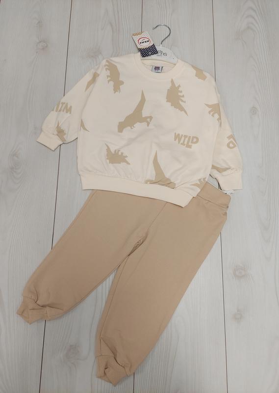 Качественный и стильный костюм для мальчика от турецкой фирмы "KRMS Sport" в молочном цвете с "DINO" 🦖🦕 Размеры в наличии: 2р/92см.рост: Кофта: рукав от горловины-42см. длина-37см. ПОГ-36см. Штани: пояс-25см.по резинке длина-51см. шаговый-33см. 3р/98см.рост: Кофта: рукав от горловины-44см. длина-40см. ПОГ-37см. Штани: пояс-26см. длина-53см. шаговый-34см. 4р/104см:ПРОДАНО. Кофта: рукав от горловины-49см. длина-42м. ПОГ-40см. Штани: пояс-26см. длина-56см. шаговый-36см. 5р/110см: Кофта: рукав от горловины-52см. длина-44м. ПОГ-41см. Штани: пояс-26см. длина-61см. шаговый-40см.