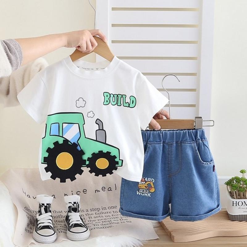 Материал футболки: 100% хлопок Материал шорт: легкий джинс (коттон + полиэстер) Пояс: эластичный Карманы: 2 боковых кармана на шортах Застежки: отсутствуют, одевание через голову/талию Принт: машинная печать + текстильная нашивка Замеры: ===РОСМЕР 80==== ФУТБОЛКА длина 35 см ширина 29 см ШОРТИ длина 27 см пояс 17 см бедра 34 см ===РОЗМЕР 90==== ФУТБОЛКА длина 37 см ширина 31 см ШОРТИ длина 30 см пояс 17 см бедра 35 см ===РОЗМЕР 100==== ФУТБОЛКА длина 39 см ширина 34 см ШОРТИ длина 31 см пояс 18 см бедра 35 см ==РОЗМЕР 110==== ФУТБОЛКА длина 41 см ширина 35 см ШОРТИ длина 32 см пояс 18 см бедра 36 см ==Ждать=СМЕР 120==== ФУТБОЛКА длина 44 см ширина 36 см ШОРТИ длина 35 см пояс 18 см бедра 41 см
