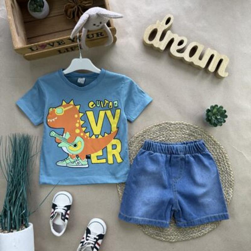 Детский костюм - производство Турция. Комплект состоит из трикотажной футболки с накатом и джинсовых шорт. Мягкие, удобные материалы обеспечивают комфорт во время ежедневной носки. Размеры: 86 (по наборе 1) – футболка длина 36 / шорты длина 26 / полуобхват 28 92 (по бірці 2) – 37 / 28 / 29 98 (по бірці 3) – 39 / 30 / 30 104 (по бірці 4) – 41 / 32 / 31