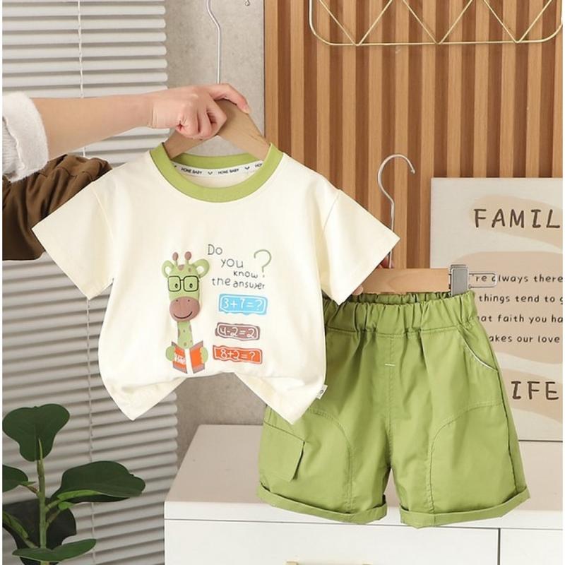 Костюм на лето мальчишку с жирафиком цвет зеленый