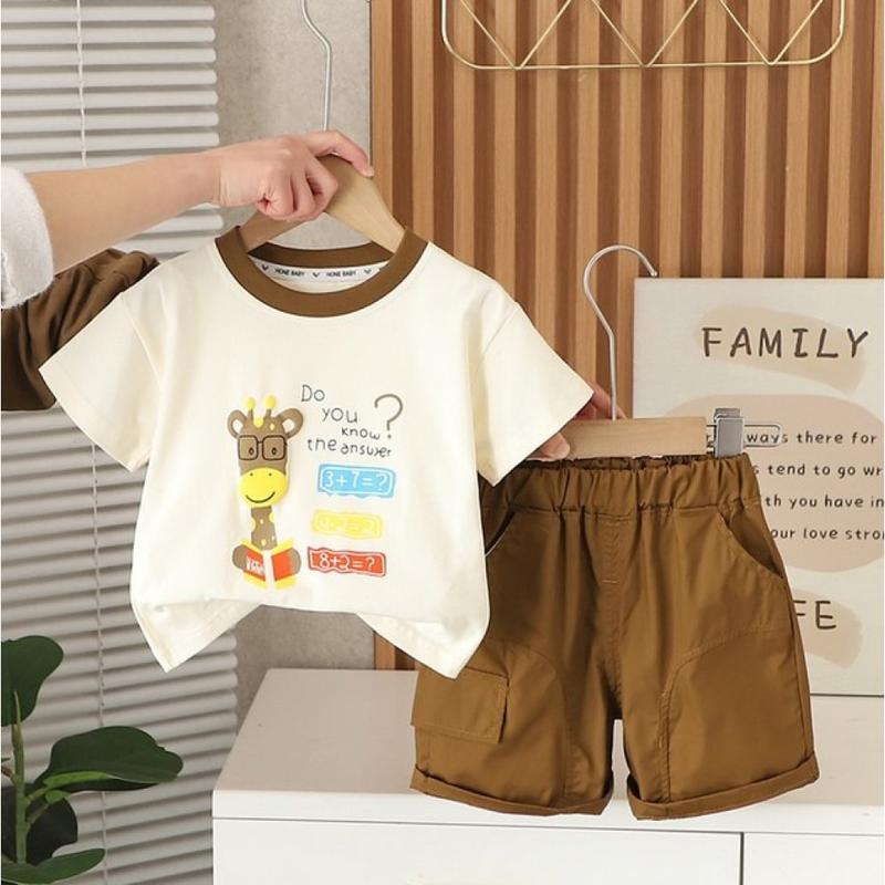 Костюм на лето мальчишку с жирафиком цвет коричневый