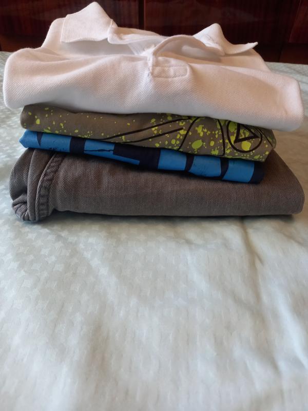 Вещи в отличном состоянии. Реглан синий Длина- 58 см. грудь - 40 см рукав - 53 см. Реглан зелегкий. Длина- 57 см. грудь - 42 см. рукав - 57 см. Футболка поло Длина- 58 см. грудь - 43 см Джинси Длина- 92 см. шаг - 67 см. пояс - 36 см. ( есть утяжка) цена указана за весь лот вещей.