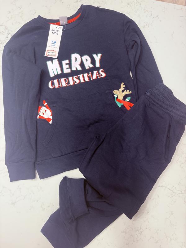 Тепленький костюм на хлопчика 7-8 років(128см) з новорічним принтом.
