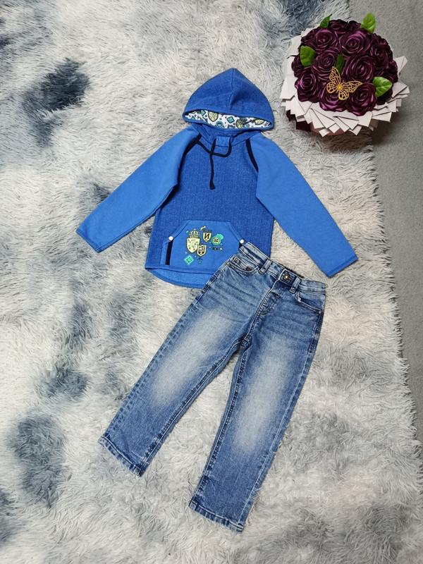 Стильний набір утеплений худі світшот толстовка та стрейчеві джинси хлопчику на 3 р