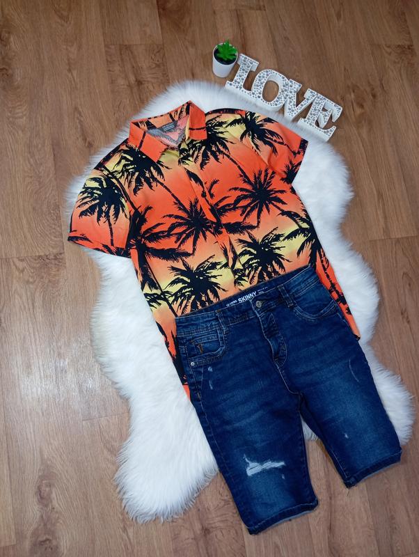Стильный набор на 12-13 лет яркая тенниска в гавайском стиле и стильные крутые джинсовые ш...