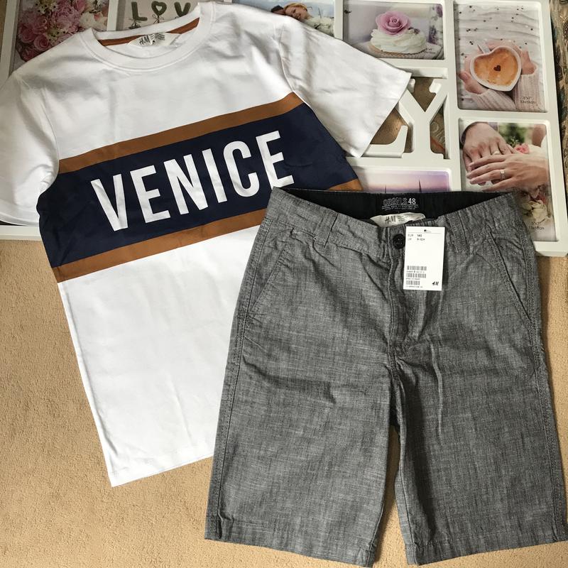 Футболка ❌продана. 🆕Новые шорты h@m📌8-10лет рост 134/140. Цена 300грн🔥. ↕️Замеры: шорты - длина 42, пояс 32(есть утяжка).