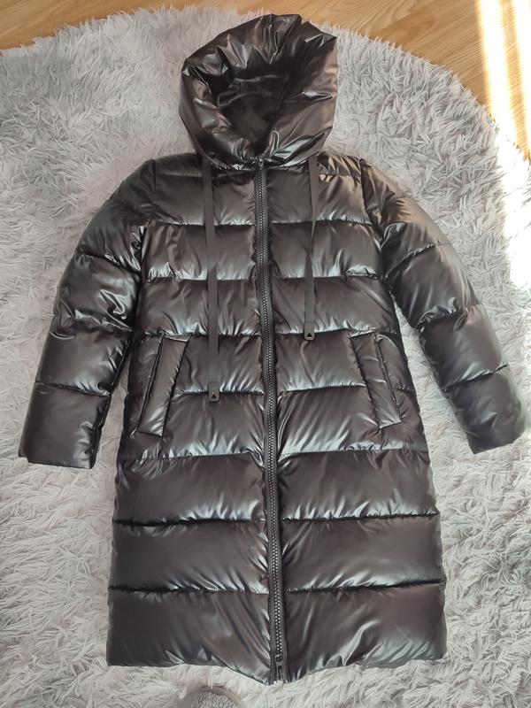 Очень теплый зимний удлиненный пуховик,новой.Нам оказался очень широк.Будет на рост +-146-152.Дополнительные замеры при необходимости.