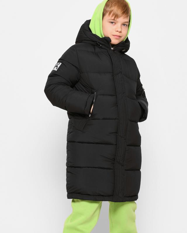 Модний пуховик для хлопчиків від 6 до 17 років. Наповнювач экопух, легкий і гіпоалергенний, витримує холод до -25 °C. Силует прямий. М'які в'язані манжети по низу рукавів для комфорту та захисту від холоду. Каптур і низ виробу регулюються кулісою. Чотири кишені на блискавці – 2 спереду, 1 на рукаві, 1 внутрішній. Застібка на блискавку з планкою на кнопках. Базова зимова парку для хлопчиків від 6 до 17 років. Наповнювач синтепух, екологічний та водостійкий, витримує холод до -25 °C. Великий капюшон і талія з фіксацією на шнур. Це дозволяє залишати тепло всередині куртки і регулювати ширину виробу. Манжети для додаткового захисту від холоду. Три кишені – 2 бічних, 1 на рукаві. Застібка на дві блискавки з вітрозахисною планкою.