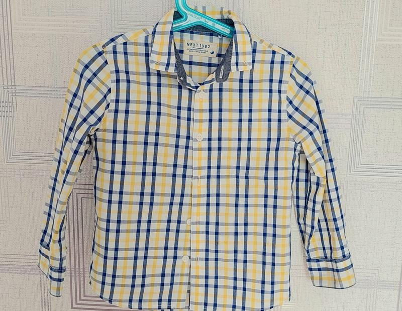 Чудова сорочка Next. Розмір 3-4 р. Заміри: - довжина 41 см; - рукав від плеча 37 см; - ширина під рукавами - 33 см.