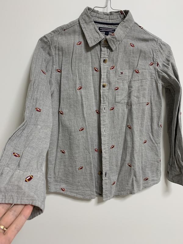 Рубашка в отличном состоянии, следует попрассовать. С современным принтом «елочка»