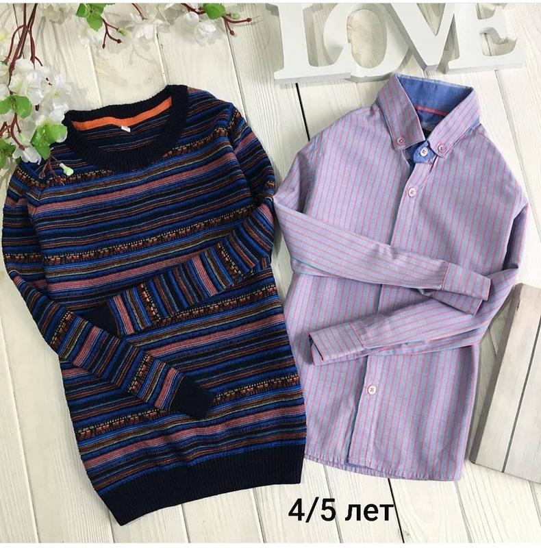Комплект на 4-5 років. Джемпер довжина 45 см, рукав 41 см. Сорочка довжина 40 см, рукав 35 см. Ціна 230 грн