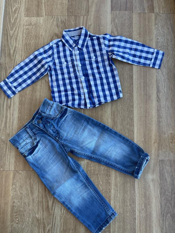 Очень модный прикидывая на мальчика. На джинсах есть дефект Размер 74