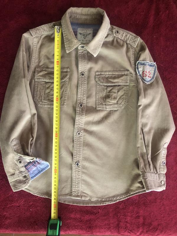 Вільветова Рубашка « Мілітарі» в гарному стані Стільнячана 8-10 років . Заміри на фото