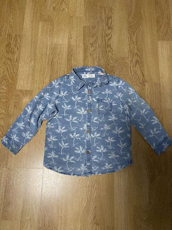 Рубашка Zara, 98 размер. В хорошем состоянии, но немного выстирался цвет. Замеры: длина 39, ширина 33, рукав 32, плечи 26