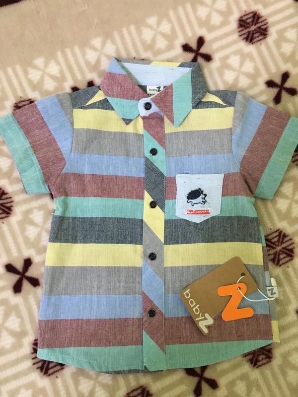 Хлопковая Рубашка на мальчика 6-9 месяцев. Нова. Без дефектов. Замеры на фото