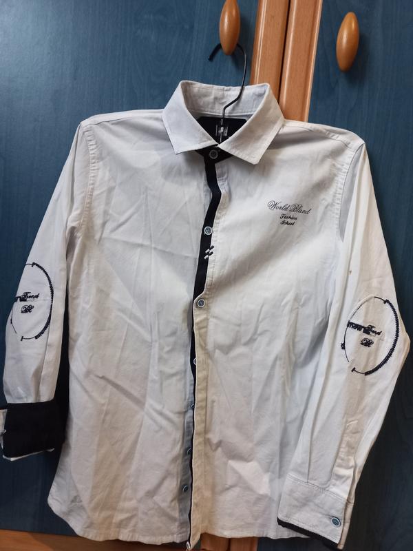Продам белую рубашку на мальчика. Рост 134,вик 9,меет пятная на фото(добавок)так очень красивая, интересующий пошив, приятная к телу.