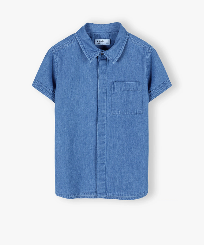 Джинсовая рубашка для мальчика с короткими рукавами - синяя Рубашка подойдет мальчикам весной и летом. У нее короткие рукава , но она очень элегантная, будет хорошим выбором для семейного праздника или дня рождения друга. Материал, из которого она сшита, — джинсовая ткань. Рубашка полностью застегивается на кнопки . Марка : 5.10.15. Состав : 100% хлопок Количество элементов в наборе : 1 Пол : мальчик Длина Рукава : Короткий Тип застежки : Кнопки Тип материала : Джинсовая ткань Цвет : синий