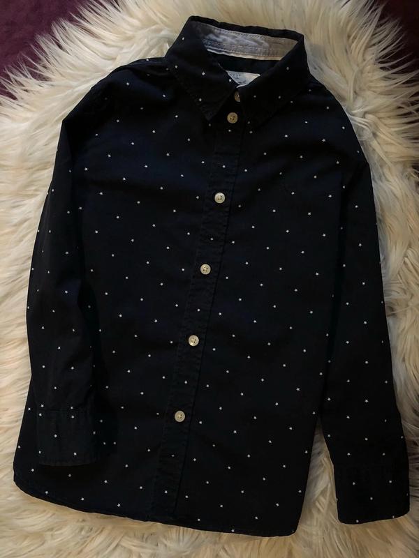 Темно-синяя рубашка в белые звезды H&M 5-6 лет (116), рукав от горла 48 (39), шир.36, длина 48, состояние идеал.