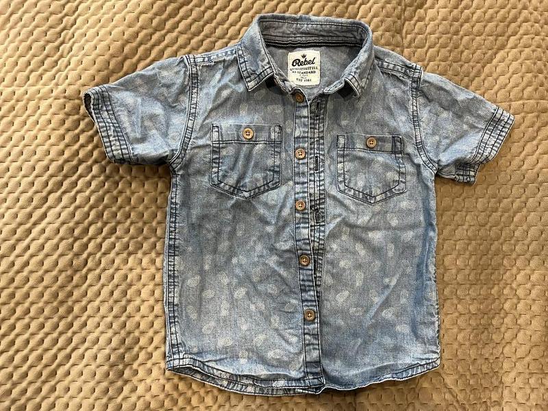 Стильная джинсовая рубашка на мальчика , р. 2-3 года .Качество отличное Замеры : 41 см , ПОГ 31 см , плечи 26 см