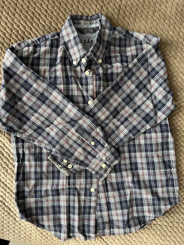 Замечательная рубашка для мальчика, плотный коттон. размер указан 7-8, но поскольку болеемерит, лучше ориентироваться на замеры. есть маленький нюанс до фото, при носке не видно. можно носить на футболку, отлично смотрится под любую одежду Замеры : длина 61см, рукав 47см, ПОГ 46см