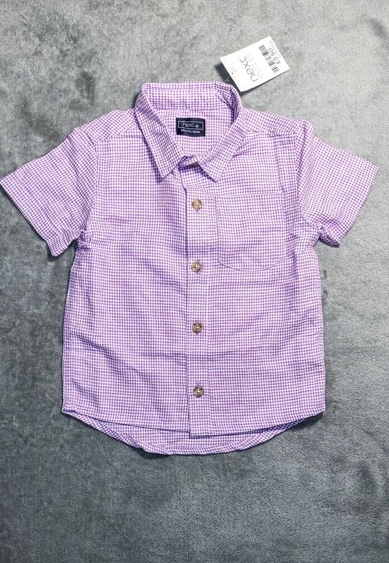 Рубашка Next в сиреневом цвете на короткий рукавчик для вашего джентльмена. Размер 12 - 18 месяцев.
