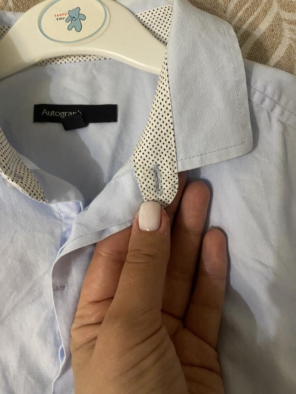 Голубая хлопковая рубашка на стройном мальчишке.Ткань тоненькая и легкая,в жиле намного красивее,цвет нежно голубой