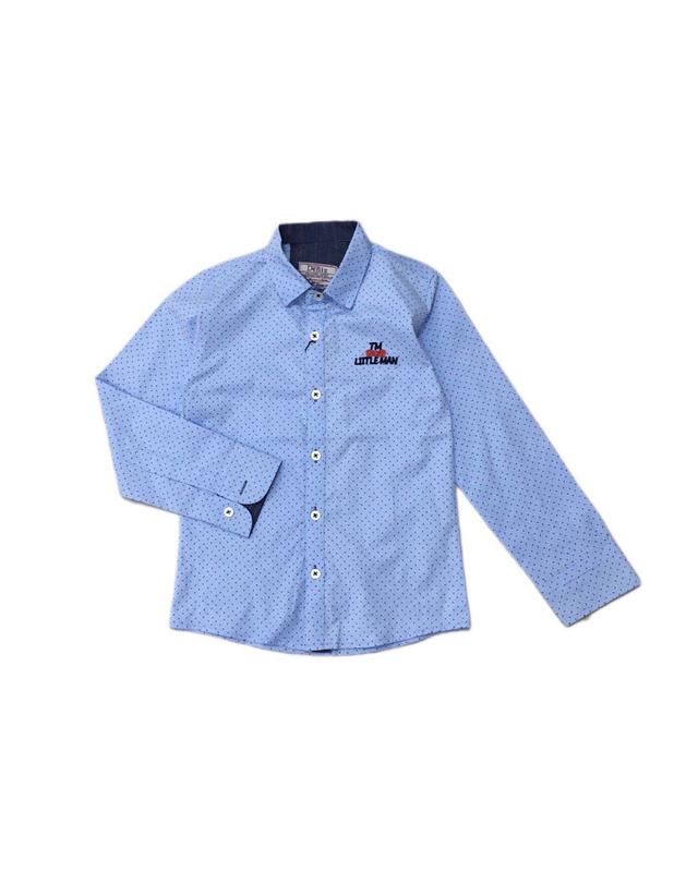 Рубашка классического кроя из хлопковой тканы-высокий воротничок застежка на пуговицах длинный рукав на манжете и на пуговицах