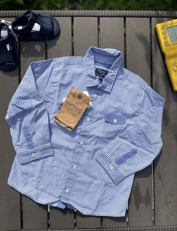 Рубашка новая, оригинальная Mayoral На мальчика 1,5 - 2 года Длина - 38 см Рукав - 31 см По плечах - 25 см Пог - 30 см