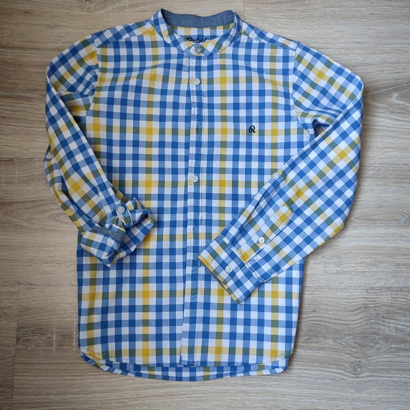 дуже стильна легенька сорочка дуже гарно виглядає на хлопчику стан ідеальний по бірці 9-10 років заміри : довжина по спинці 55 см ширина 41 рукав від плеча 49 см плече 9 см 100% котон