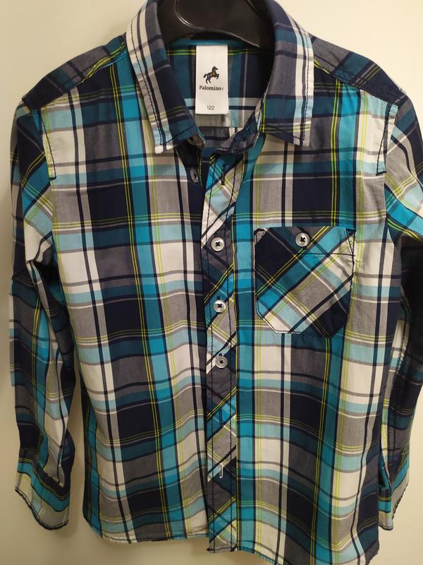 Очень мягкая, приятная к телу рубашка.В идеальном состоянии.100 коттон.Оделась 1-2 раза. 122 длина по пуговицам -46 рукав от горловины -51