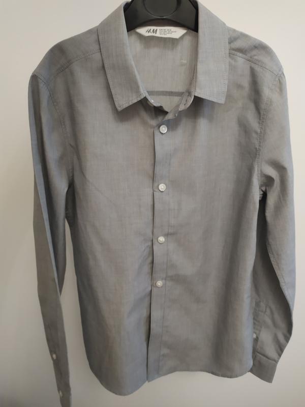 Рубашка очень приятная на ощупь.100 коттон.В отличном состоянии.Не была в использовании.Не подойти размер. 140 длина по пуговицам -50 рукав -52 плечі-33