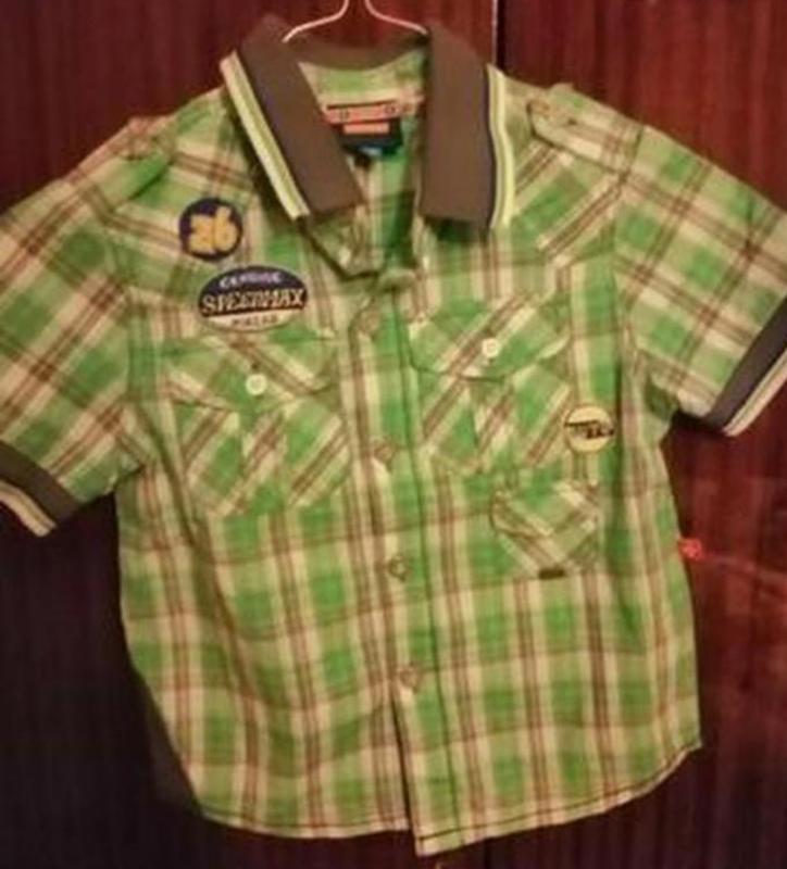 Рубашка 110 см (5 лет). Стан - идеальный. Довжина-45 см, Ширина-35 см (35 см), Рукав-15 см. Написано 5. Материал - Kotton