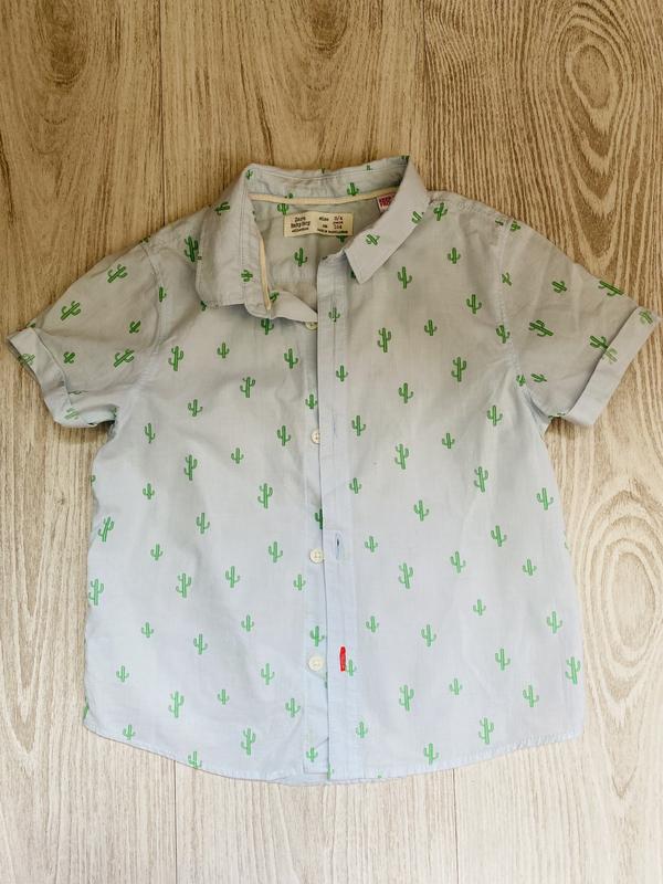 В отличном состоянии, наша любимая рубашка. На 104 см, замеры: длина 39 см, рукавчик 13 см, ширина 32 см