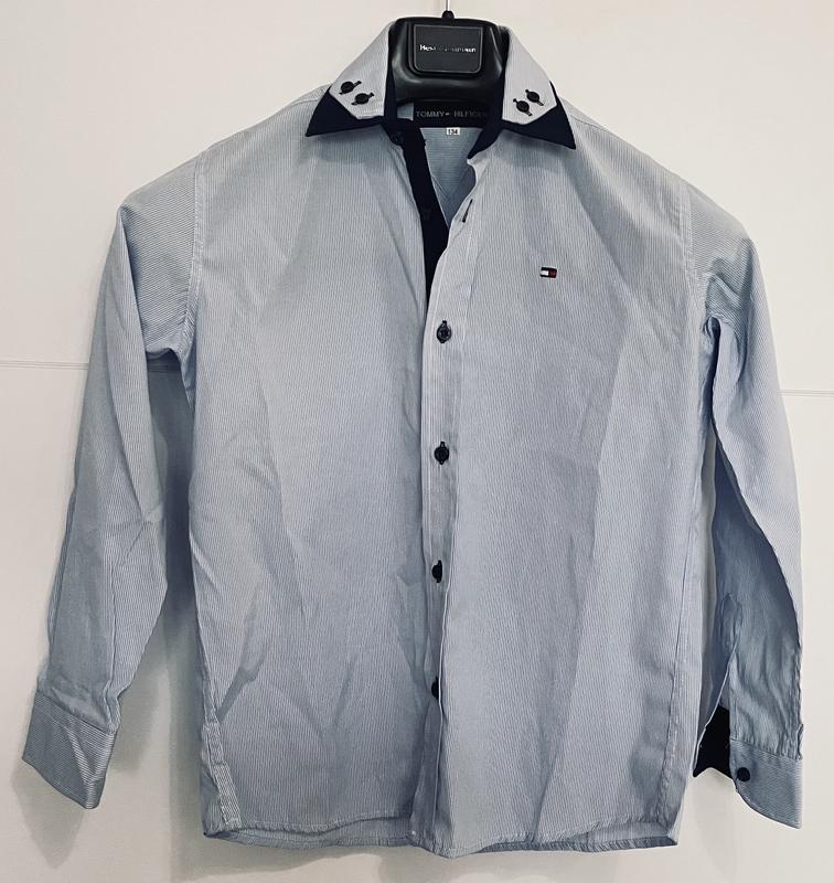 Рубашка детская TOMMY HILFIGER в голубую тоненькую полоску. На рост 134см. Стан идеален (благодаря 1 раз). 100% coton, але на дотик гладка. Праздничная, стильная рубашка для модного мальчика.