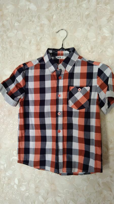 Сорочка для хлопчика, розмір 6-8 128 см Колір: клітинка біла, синя, помаранчева Заміри: рукав від плеча 17 см, ПОГ(ширина)41 см, довжина 50 см, плечі 35 см. Дивіться інші мої оголошення, при покупці декількох речей, знижка. Із задоволенням відповім на всі запитання.