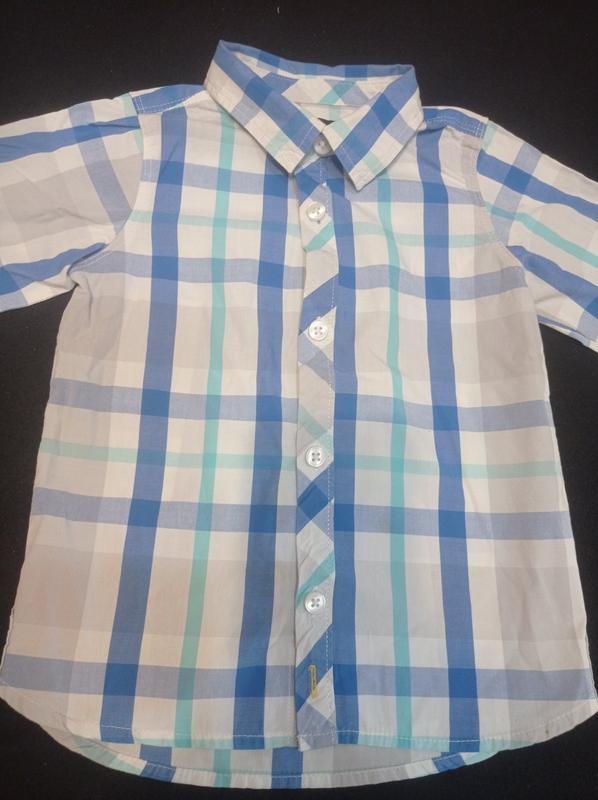 Минимальный заказ у продавца на 100 грн. Рубашка в хорошем состоянии на ребенка трёх лет. Есть практически не заметное пятнышко. Длина изделия по спинке 41 см, ПОГ 31 см, длина рукава от плеча 34 см. Модель 2268