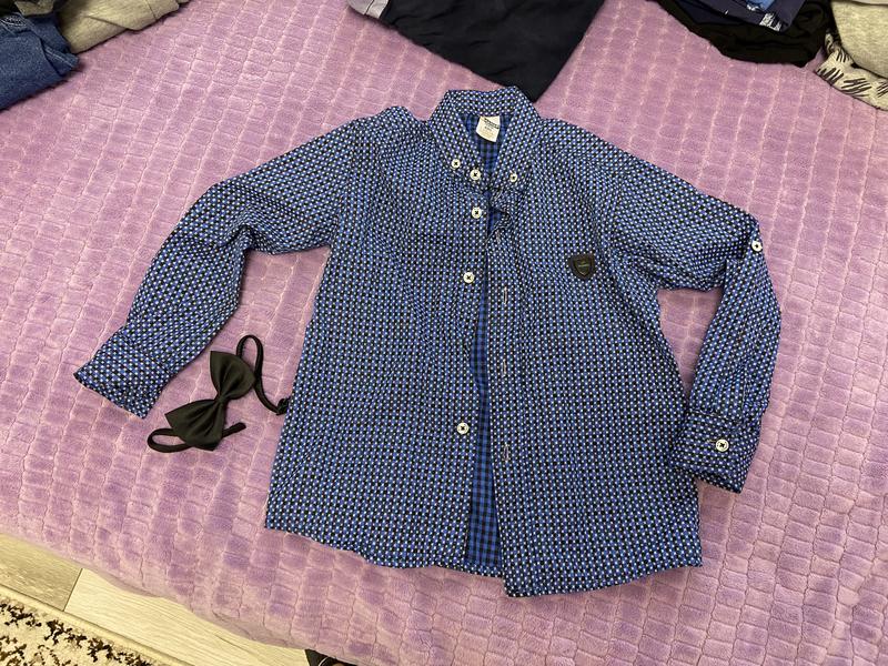 Продам рубашку в клетку на 5-6 лет, рост 116см. Бабочку отдам в подарок.