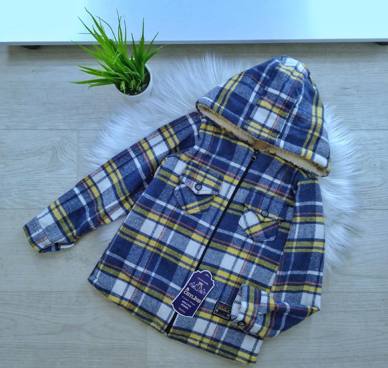 Трендовая рубашка в клетку на меху 🤩🤩🤩🤩Очень теплая, красивый принт, по всей длине молния, на рукавах есть пуговицы 😍😍😍😍 Спереди два действующих маленьких кармана, капюшон утеплен также мехом 💥💥💥💥💥💥 Ткань: ангора на меху 🔥 Производитель: Турция 🇹🇷 ЗАМІРИ ⤵ +/- 1-2см!!! р.6р длина от плеча 46 см / ПОГ 36 см / рукав от плечевого шва 42 см р.8р длина от плеча 51 см / ПОГ 38 см / рукав от плечевого шва 45 см