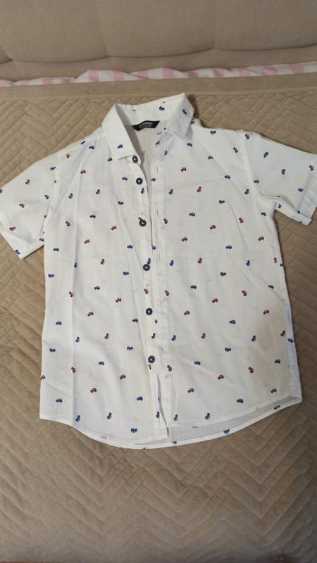 Рубашка з принтом машинки, любов любовна, дуже стильно виглядає для маленьких поціновувачів автотранспорту. Тканина натуральна, приємна до тіла. Заміри: довжина 52, плечі 32, груди 40.