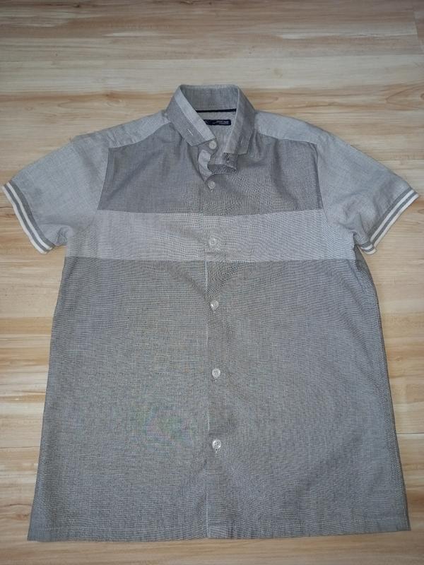 Рубашка 100%хлопок Бренд Next на 10-11л Замеры плечи 33 пог 43 длина 57 состояние в целом отличное есть не значительное пятнышко на фото показано возврата нет