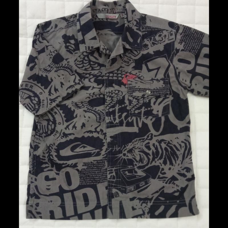 качественная черно серая рубашка плотненькая с отложным воротником .тематика машины тигр...внизу по бокам разрезы верхняя застежка на петле пуговка остальное скрытые метал.кнопки.слева карман с клапаном на кнопке с брендом.сзади выше на спине красная вышивка бренда.хлопок 100% страна Индия отшито. на 8 лет бирка .состояние на очень хорошее .замеры:37- плечи*45- грудь*52- длина*20- рукава* низ с разрезами-43 см