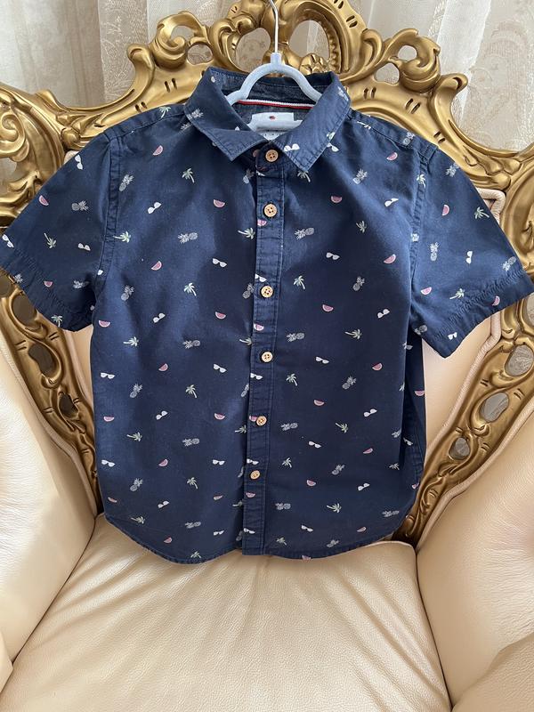 Стильная рубашка для летних прогулок и отдыха. Указан возраст 5-6 лет. Длинна 45см. Состояние отличное.