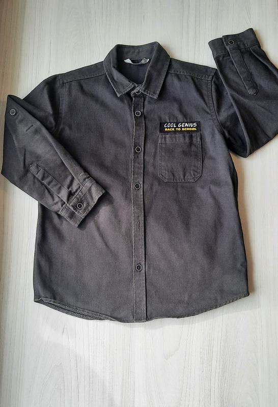 Очень классная рубашка на 6-7 лет (замеры на фото), отлично подойдет в качестве верхней одежды в теплую погоду. 100% хлопок. Стан идеален.