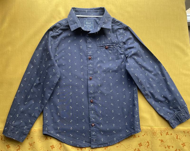 Рубашка на мальчика синего цвета. (фото меняет цвет). Возраст 6-7р.