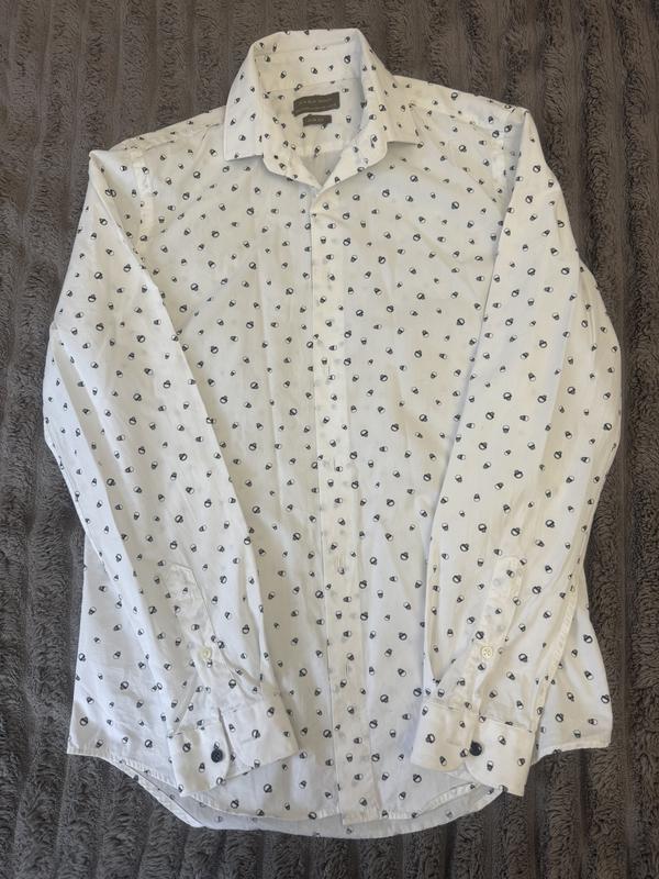 Сорочка для хлопчика білого кольору. Принт : черепи. Стан новий .